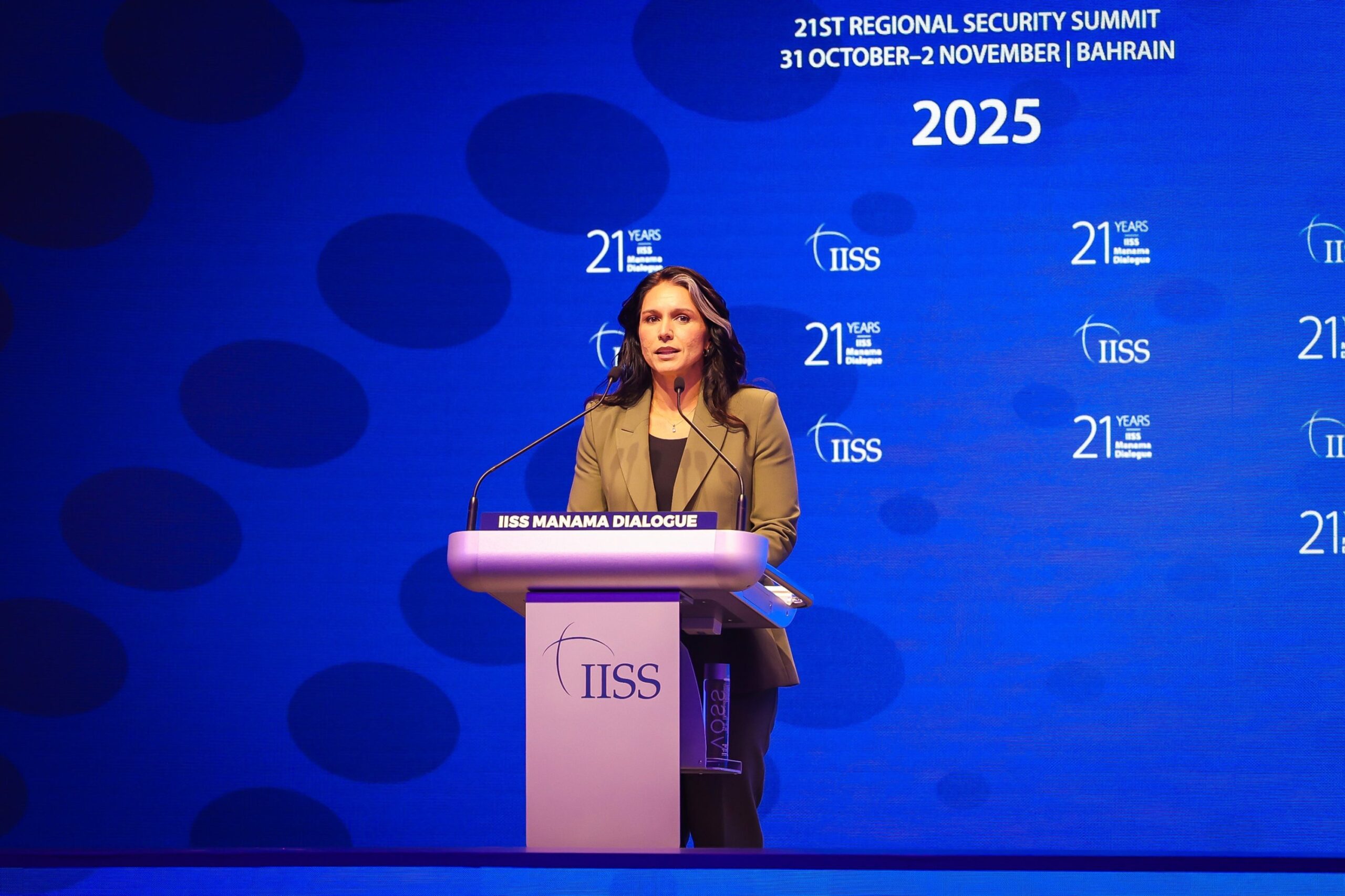 गैबार्ड बहरीन में आयोजित मनामा डायलॉग—जो इंटरनेशनल इंस्टीट्यूट फ़ॉर सिक्योरिटी स्टडीज़ (IISS) का वार्षिक सुरक्षा सम्मेलन है—में बोल रही थीं। उनके बयान राष्ट्रपति ट्रंप की इसी वर्ष की मध्य पूर्व यात्रा के दौरान दिए गए बयानों की पुनर्पुष्टि करते हैं।